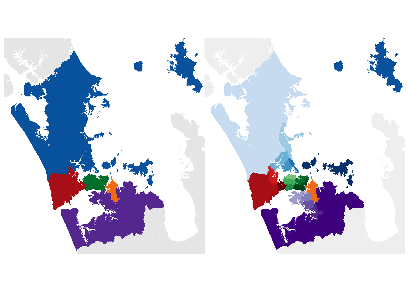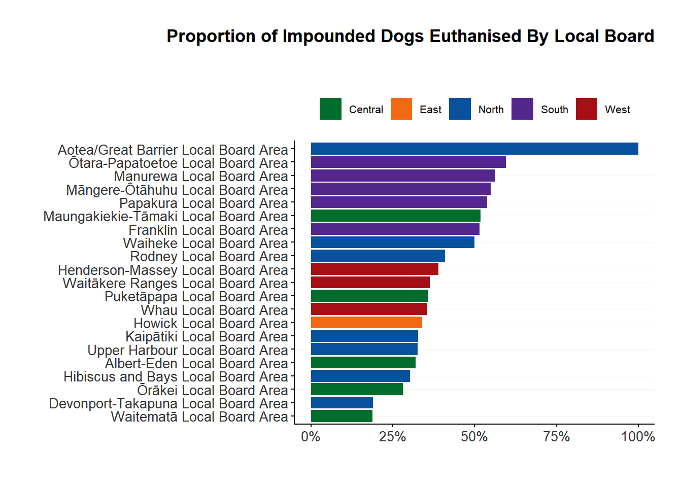 Auckland’s 21 Local Boards can be grouped into 5 regions (North, South, East, West, and Central).