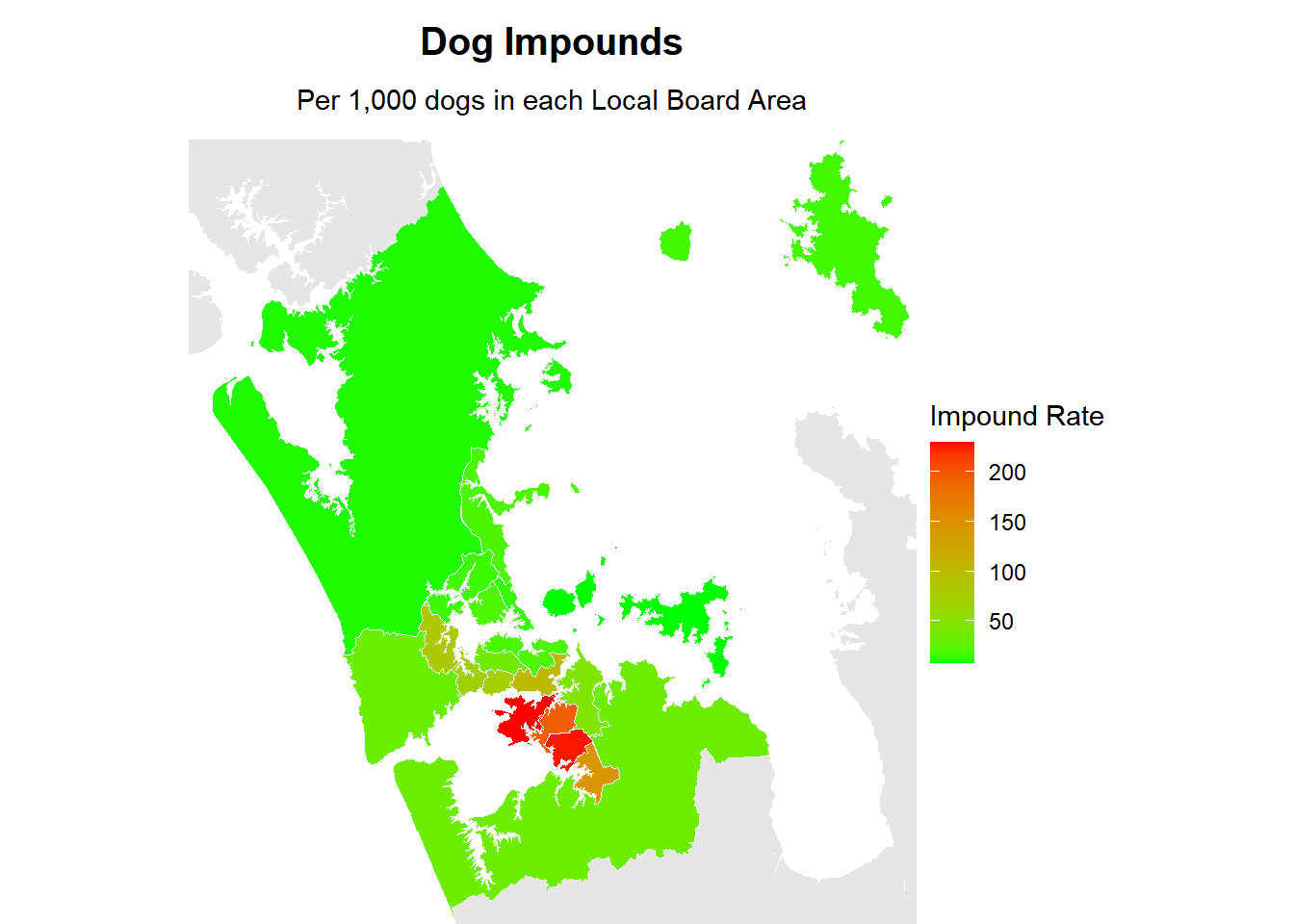 - South Auckland has lower rates of registration and desexing, and higher rates of attacks and impounds.